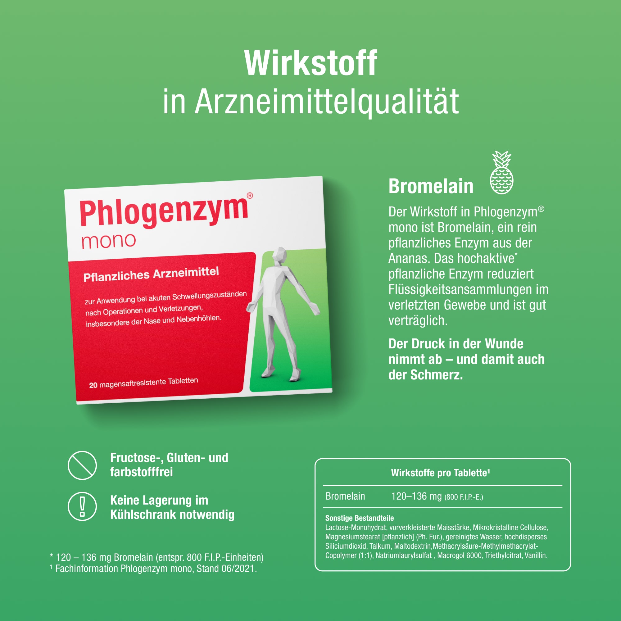 Arzneimittel zur Beschleunigung der Heilung entzündlicher Verletzungen und Erkrankungen wie aktivierter Arthrose, Venenentzündungen oder Schwellungen nach Verletzung.