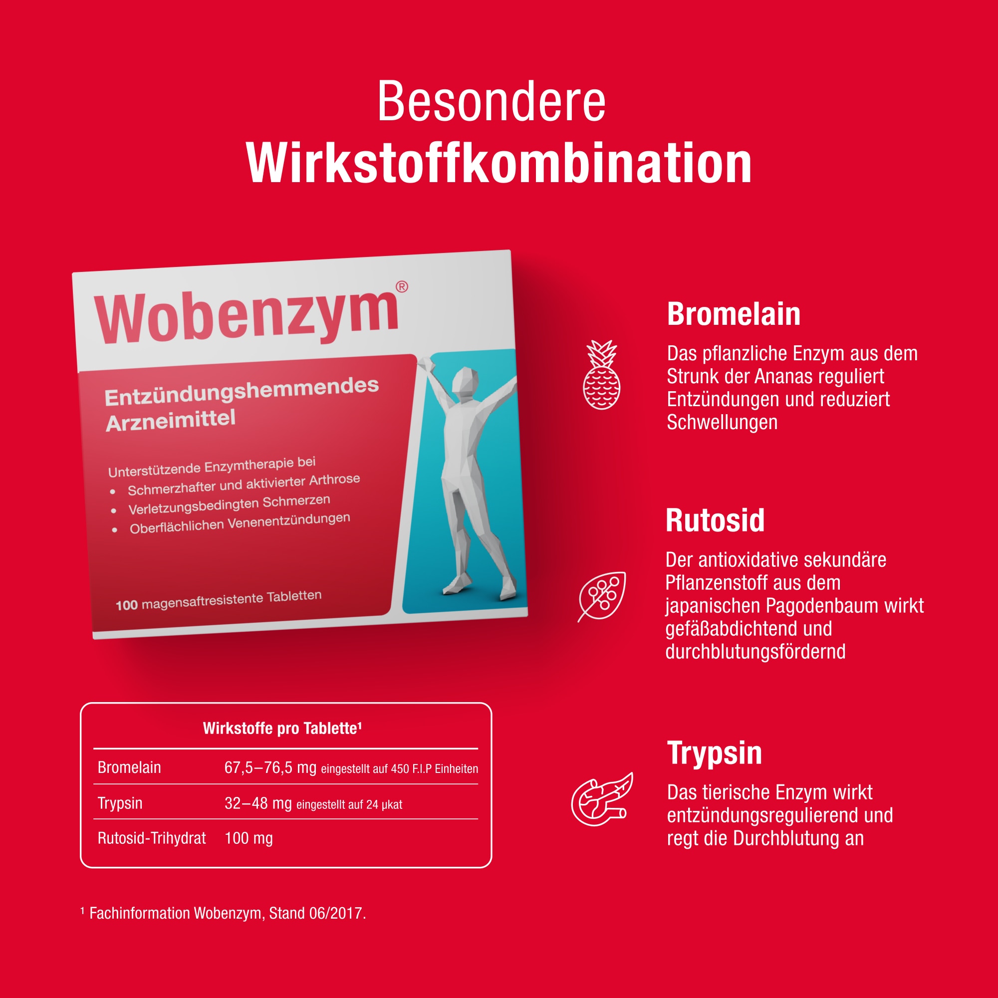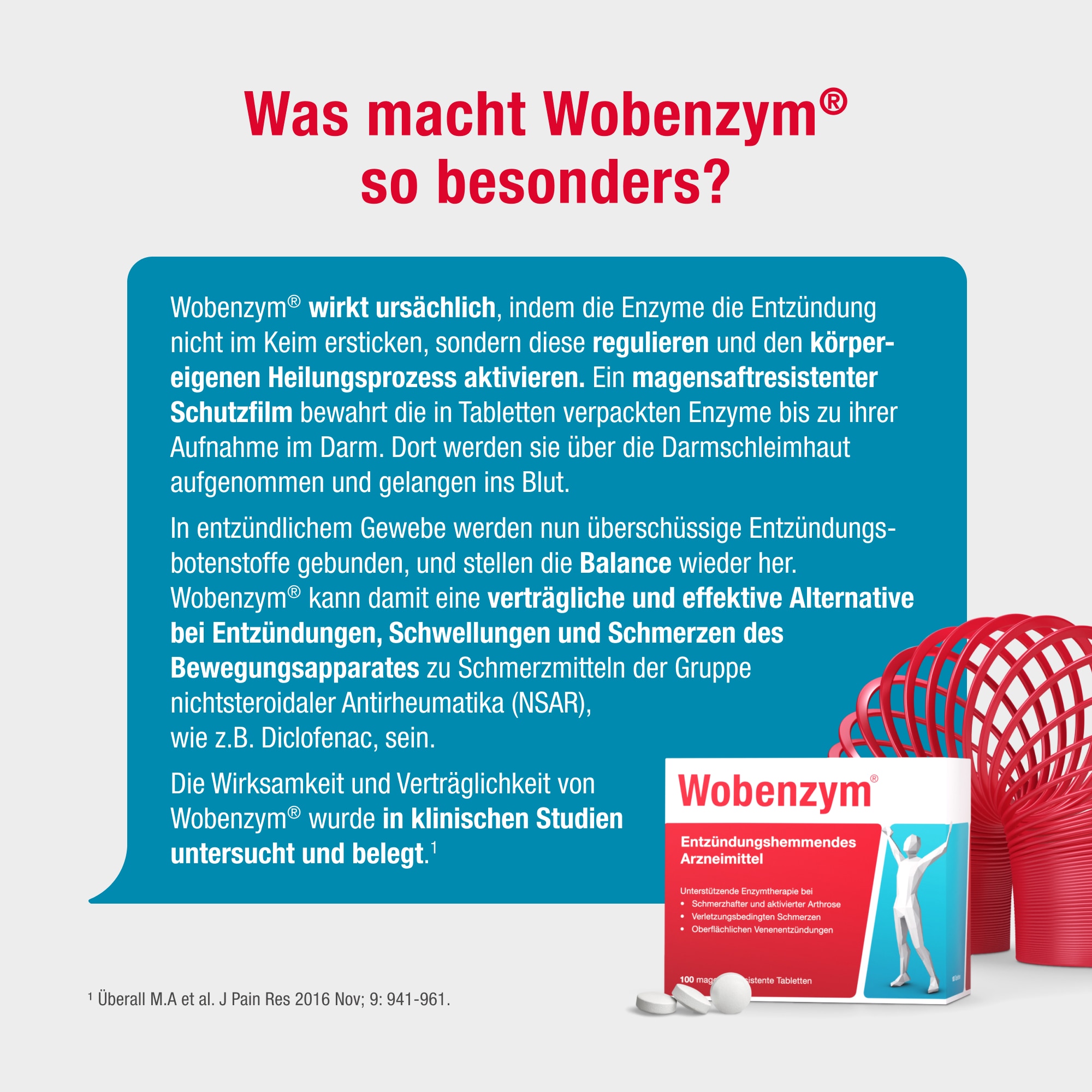 - Wobenzym® aktiviert den körpereigenen Heilungsprozess durch die unterstützende Wirkung der Enzyme