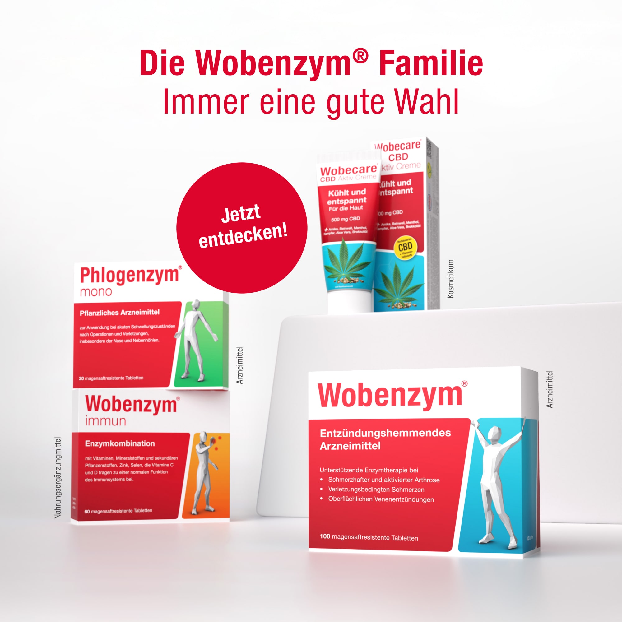 Phlogenzym® mono und Wobecare® CBD Aktiv Creme sind nach wie vor wie gewohnt erhältlich.
