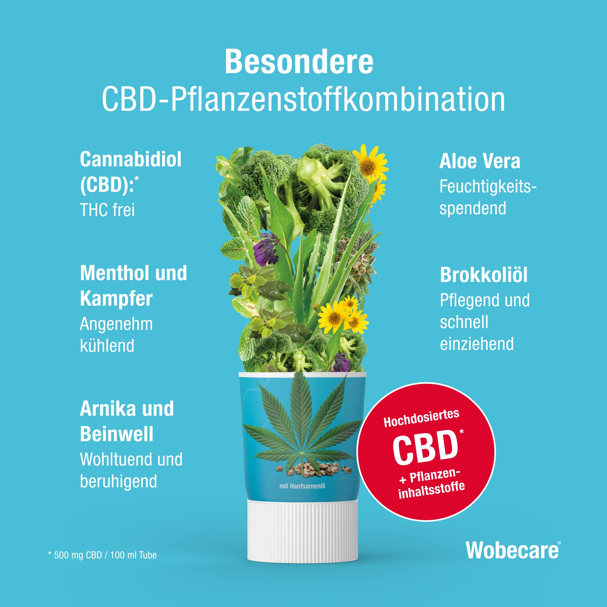 - Hochdosiertes CBD: 500 mg pro Tube
