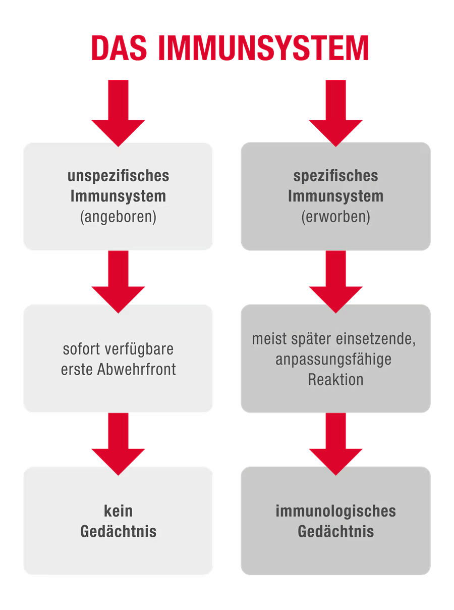 Das Immunsystem ist ein hochkomplexes Netz an Abwehrmechanismen. Zwei wesentliche Säulen darin sind das angeborene und das erworbene Immunsystem. Diese zwei Komponenten unterscheiden sich in den Aufgaben, die sie für die Abwehr erfüllen und in den Bestandteilen (Zellen, Proteine), die für die Abwehr eingesetzt werden. 3,4 Verschiedene Immundefekte (angeboren oder erworben) können sich auf einzelne Bereiche dieses komplexen Netzwerkes auswirken und damit zu einem schwachen Immunsystem beitragen. 5,6 Die Behandlung angeborener und erworbener Immundefekte gehört in jedem Fall in die Hände erfahrener Ärzte!